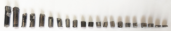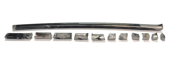 La Cortadora de Pines EQT-100 aplica hasta 10 toneladas de fuerza sobre una cuchilla para cortar las colas de las piruletas “lollipop” (probetas de las coladas de los metales fundidos) así como obtener pines de diferentes longitudes a partir de varillas macizas, prácticamente de cualquier metal.